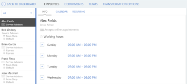 • Transportation Options is used to control the number of appointments assigned to a particular transportation option in order to manage department and dealership resources.