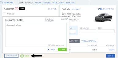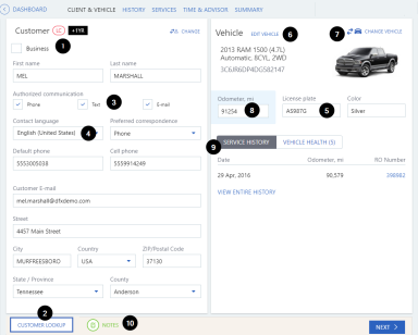 • As a good practice, to review previous RO history, maintenance bought and declined, pre-writes and the Technician inspection reports (for those dealers with Technician Inspection enabled).