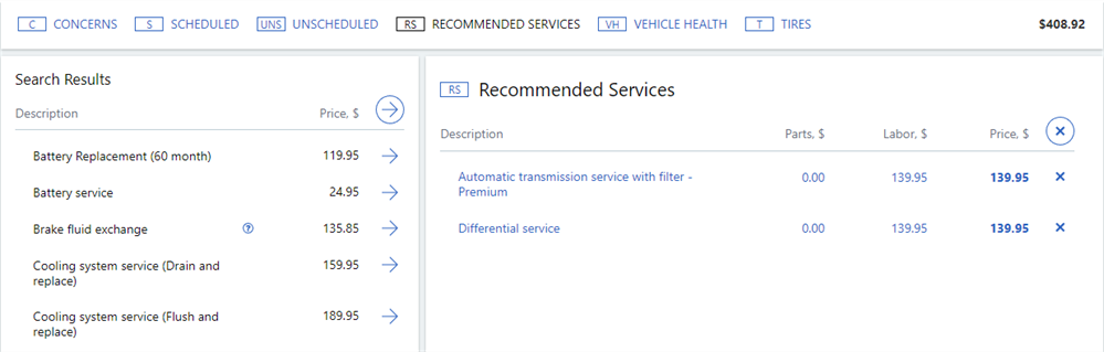 The Services pages are used to add concerns and services to the appointment using the following tabs: