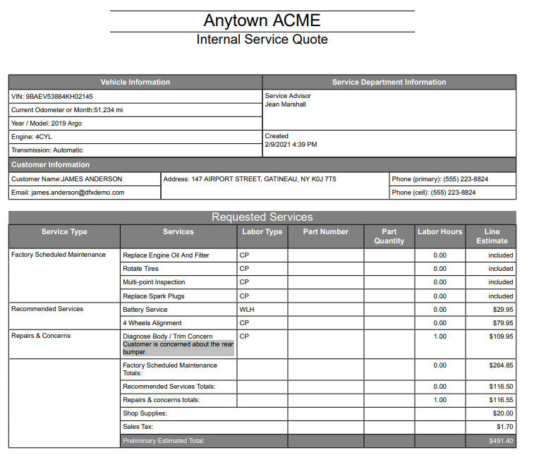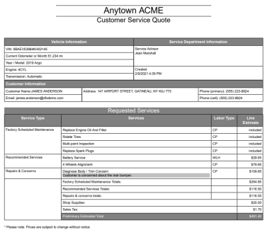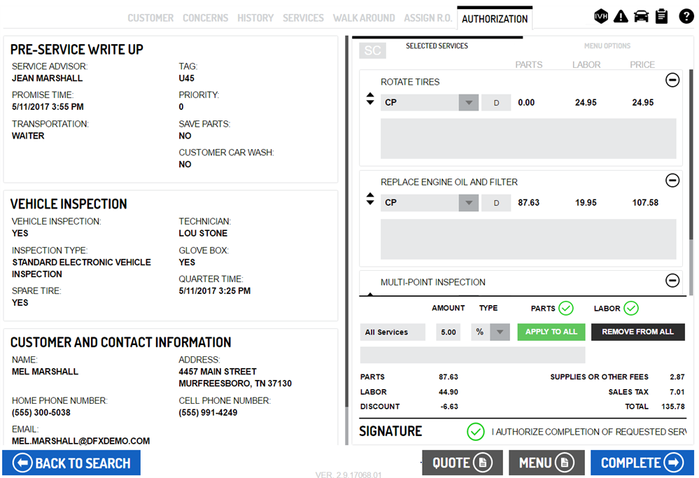 Start by reviewing all of the customer and vehicle information plus the selected services.