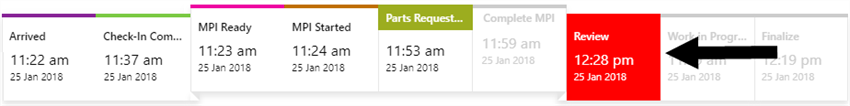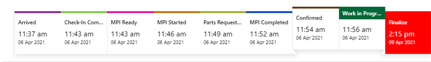 From a service lane's timeline, you can quickly see where the vehicle is in its journey from arrival to delivery.