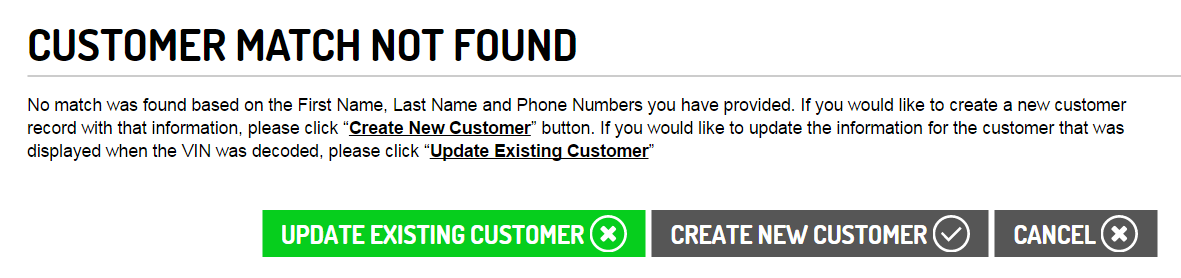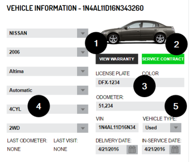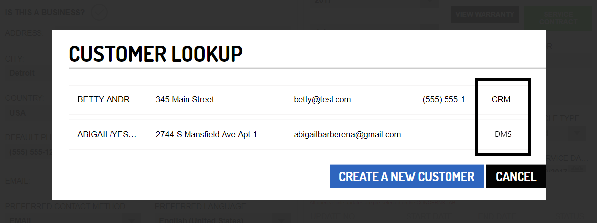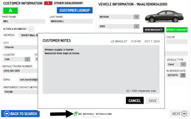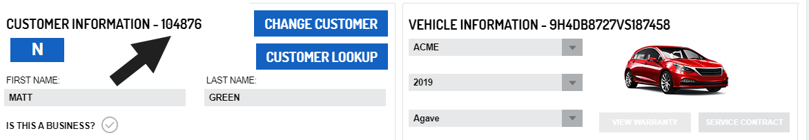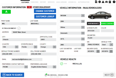 The Customer page is the first step in creating the RO and appears when a vehicle is selected.