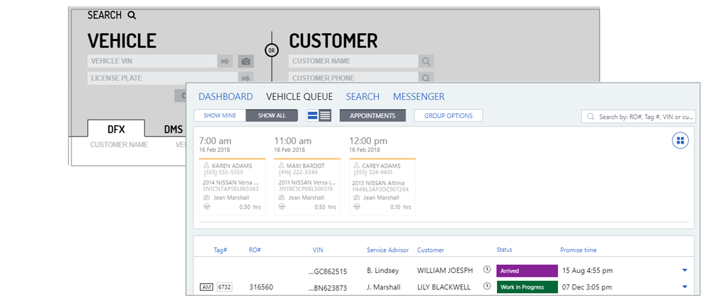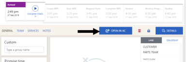 To start the Repair Order (RO), first find the customer's vehicle at your dealership from Workspace, Service Dashboard or Advisor Check-In.