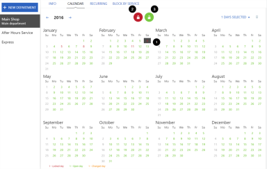 to block the day. - The date turns red on the calendar and no appointments can be booked in Appointment Manager.