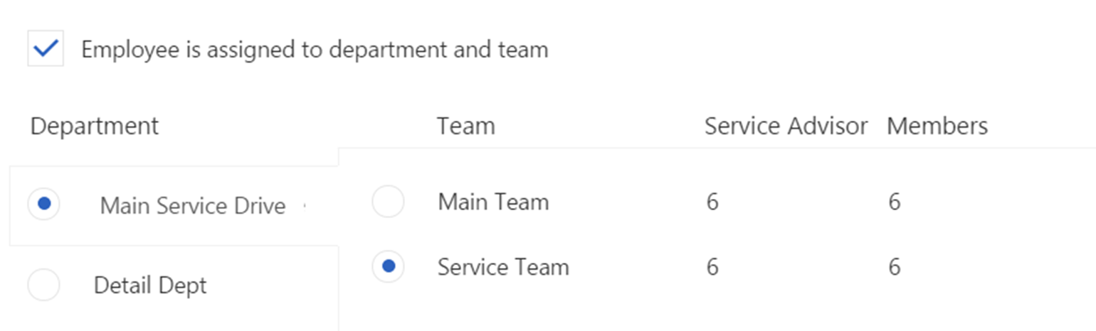 1. All the employees in the dealership are listed on the left.