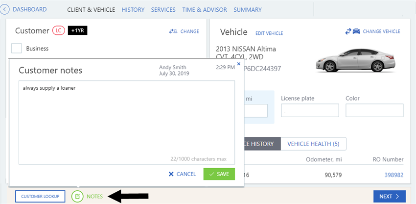 • As a good practice, to review previous RO history, maintenance bought and declined, pre-writes and the Technician inspection reports (for those dealers with Technician Inspection enabled).