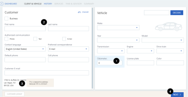 3. Depending on the dealership configuration, the address defaults to the dealership's or can be entered. If the dealer address is used, the information can be completed when the customer arrives at the dealership,